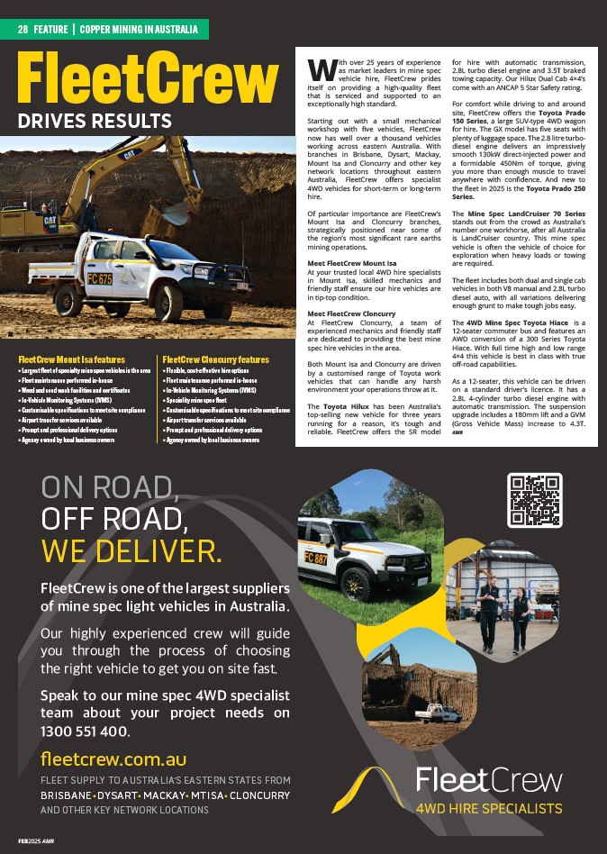 Of particular importance are FleetCrew’s Mount Isa and Cloncurry branches, strategically positioned near some of the region’s most significant rare earths mining operations.
