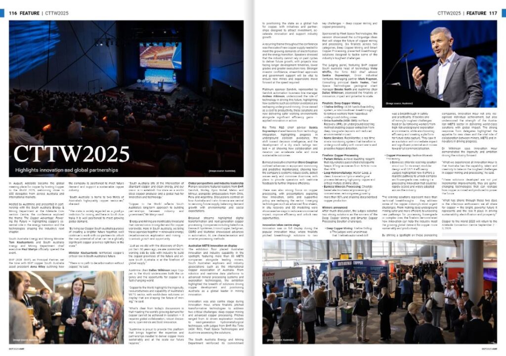 Hosted by Austmine and presented in partnership with the South Australia Energy & Mining Department at the Adelaide Convention Centre, the conference explored the theme The Copper Advantage: Powering the Future — highlighting copper’s essential role in the energy transition and the technologies shaping the industry’s next chapter.