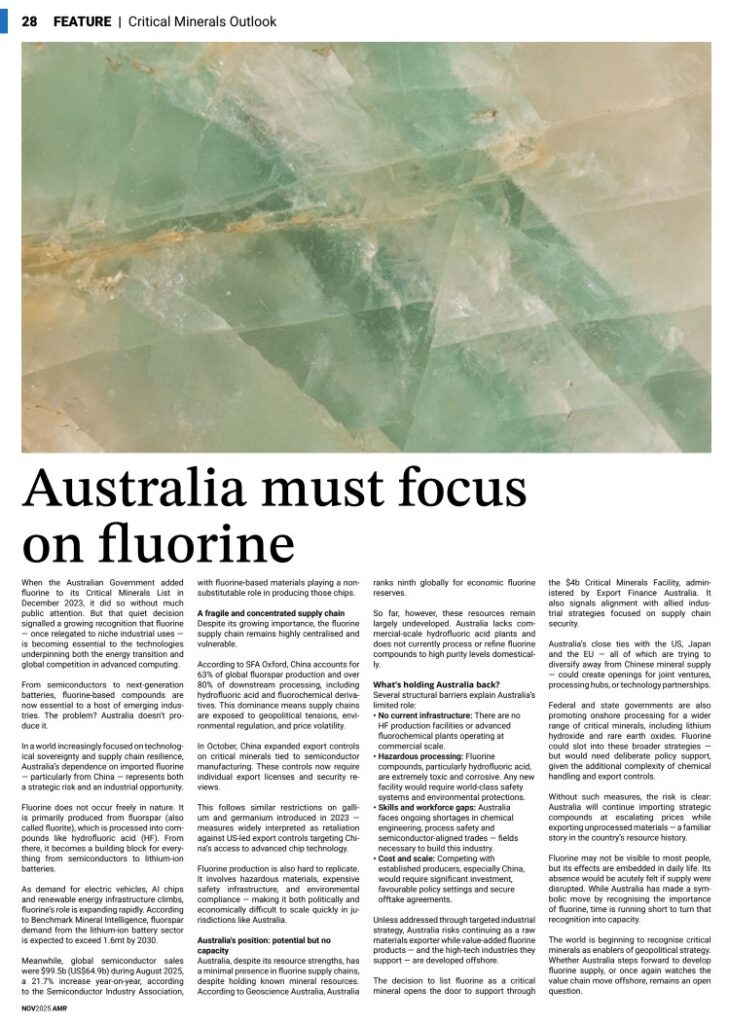 The world is beginning to recognise critical minerals as enablers of geopolitical strategy. Whether Australia steps forward to develop fluorine supply, or once again watches the value chain move offshore, remains an open question.