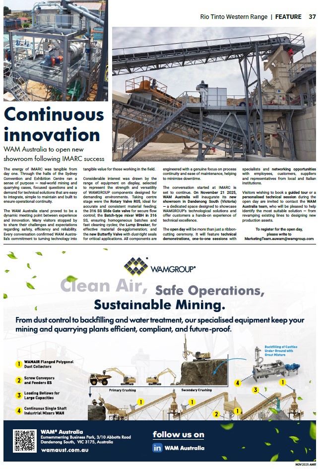 The conversation started at IMARC is set to continue. On November 21 2025, WAM Australia will inaugurate its new showroom in Dandenong South (Victoria) — a dedicated space designed to showcase WAMGROUP’s technological solutions and offer customers a hands-on experience of technical excellence.