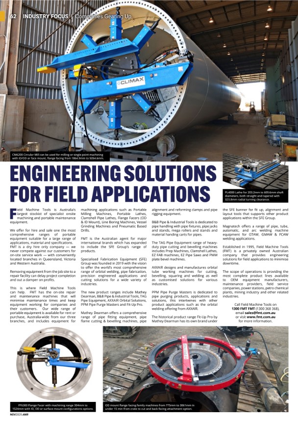 Field Machine Tools is Australia’s largest stockist of specialist onsite machining and portable maintenance equipment.