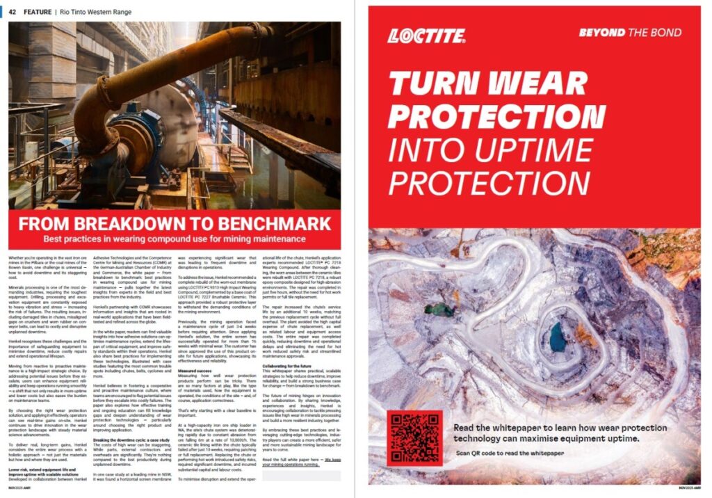 Developed in collaboration between Henkel Adhesive Technologies and the Competence Centre for Mining and Resources (CCMR) at the German-Australian Chamber of Industry and Commerce, the white paper — From breakdown to benchmark: best practices in wearing compound use for mining maintenance — pulls together the latest insights from experts in the field and best practices from the industry.