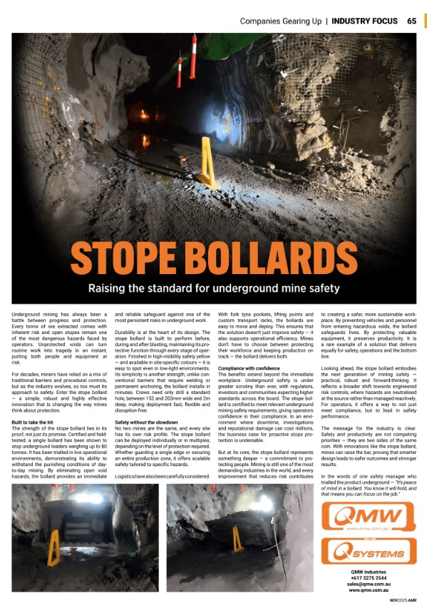 The message for the industry is clear. Safety and productivity are not competing priorities — they are two sides of the same coin. With innovations like the stope bollard, mines can raise the bar, proving that smarter design leads to safer outcomes and stronger results.