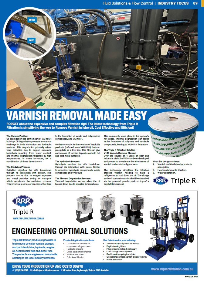 Forget about expensive and complex filtration rigs — the latest technology from Triple R Filtration is making varnish removal in lube oil simple, inexpensive and efficient.