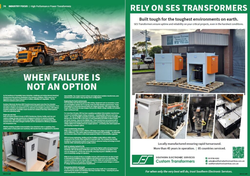 Southern Electronic Services (SES Transformers) has spent more than four decades earning its reputation as one of Australia’s most trusted transformer manufacturers. From aluminium smelters and steelworks to ore refineries and dragline operations, SES delivers precision-engineered, Australian-made transformer solutions that keep critical systems online and operating safely.