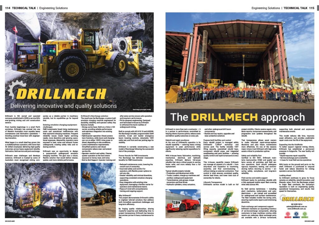 As Drillmech continues to grow, its focus remains on reliability, rebuild innovation, and lifecycle value. From the Barcharge project to major fleet overhauls, the company’s reputation is built on engineering quality, operational transparency, and results that speak for themselves.