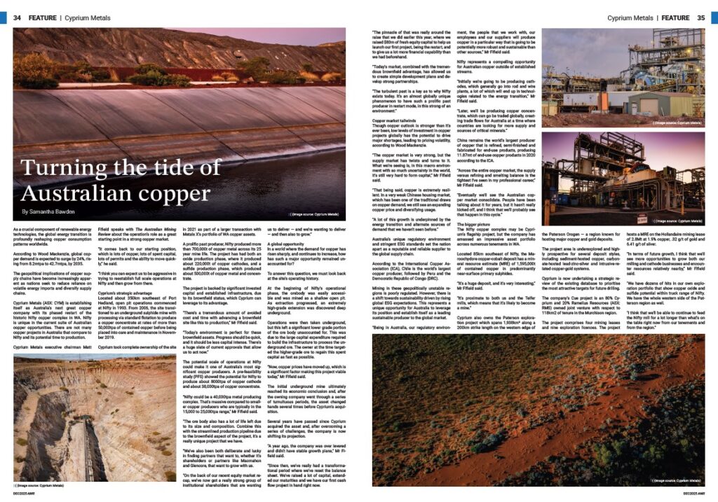 Cyprium Metals executive chairman Matt Fifield speaks with The Australian Mining Review about the operation’s role as a great starting point in a strong copper market.